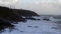 Rough waves smash against Cornwall's coast as Storm Atiyah strikes
