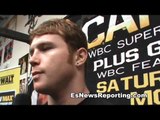 Saul Canelo Alvarez gives speaks to the press and answers questions after scoring a TKO victory over Josesito Lopez in the 5th round.