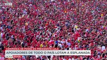 O avião que transportou o ex-presidente Lula, procedente do aeroporto de Congonhas, na capital paulista, pousou em Curitiba pouco depois das 10 horas da manhã. Ao mesmo tempo, chegavam à capital paraense parlamentares e a ex-presidenta Dilma Rousseff. Ao mesmo tempo, milhares de apoiadores do ex-presidente Lula se concentravam na Praça da Democracia, no centro de Curitiba.