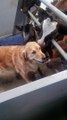 Joyful golden retriever visits barber for a doggo hair cut