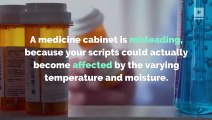 5 Things You Should Stop <br />Storing in Your Bathroom Certain things seem totally normal <br />to keep in your bathroom. But these 5 things <br />actually have no <br />business being there. 1. Medicine A medicine cabinet is misleading, because your scripts could actually become affected by the varying temperature and moisture. 2. Makeup And Makeup Brushes Moisture and humidity <br />make these items more susceptible <br />to germs and bacteria. 3. Perfume Bathroom conditions can cause your scent to spoil more quickly. 4. Razor Blades Unless they're still in airtight packaging, leaving them <br />exposed to the bathroom elements can cause dulling and rust. 5. Electronics If they're not specifically made for bathroom use, your electronics can become damaged by humidity. Ultimately, it's best to keep these items in cool, dry places where their integrities won't degrade.