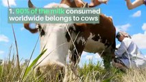 5 Fun Facts About Cows 1. Cows kill. A 2012 'ABC News' report <br />stated that cows kill <br />an average of 22 people a year. As a comparison, sharks only <br />kill about six people per year. 2. Cow tipping is a myth. Cows weigh 1500 pounds, <br />on average, and sleep lying down. <br />Tipping them is a near-impossible feat. 3. Cows <br />have crazy <br />digestive systems. Their stomachs <br />contain four pouches <br />that food must pass through <br />before being digested. 4. Cows with names <br />produce more milk. Giving them names promotes an affectionate relationship, <br />which reduces their stress. <br />Stress-free cows produce more milk. 5. Bulls can't see red. They are red/green colorblind. The movement of the bullfighter's cloth is what stimulates their aggression.