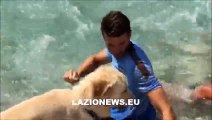 Auronzo 2015. Al lago Hoedt gioca con un cane e scherza con Murgia