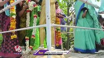 Sharmila Pays Tribute To Chakali Ailamma Statue At Film Nagar On Eva of Women's Day | V6 News