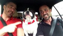 Dos franceses y un perro se divierten cantando