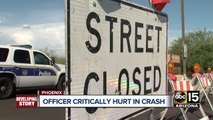 A Phoenix police officer has been transported to the hospital in extremely critical condition after a two-vehicle crash in north Phoenix.