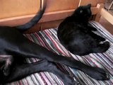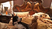 Patient Great Dane gets pestered by noisy cat