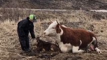 Young Farmer has SPECIAL BOND with cow and calf!