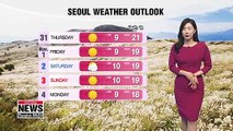 Good morning, it was amazing how cool and nice it was overnight.Tropical nights finally came to an end after 26 consecutive days of warm nights in Seoul, 27 days in Daejeon and 29 days in Daegu. <br /><br /> We could already tell the difference in the air from yesterday afternoon, temperatures will go up as high as yesterday except regions in the east it shouldn't be too bad. <br /><br /> In fact, heat wave alerts have been downgraded or lifted... Seoul is finally under a heat wave advisory after nearly a month of a heat wave warning. Regions in the east will enjoy the temperatures. <br /><br /> We won't sweat on the way to work this morning, gentle winds are very welcome. Morning lows kicking off at 24 degrees Celsius in Seoul and Gwangju. Jeju could see up to 40 millimeters of showers in the morning. <br /><br /> Daily highs in Seoul will still be warm at 34 degrees, Daejeon and Gwangju at 35 degrees. Those in Gyeongju and Daegu will be at 29 and 30 degrees. <br /><br /> Hot, but much more bearable temperatures are in store for a while here in Seoul.<br /><br />That's Korea for you and here's the international weather for viewers around the world.<br />
