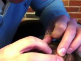 Guy staples back of co-worker's head