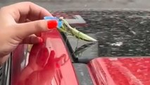 Couple Feeds Water to Injured Vulture