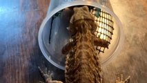 'Hit the Bullseye!' - Hungry bearded dragon jumps to snatch hornworms from basket