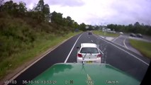 Un conducteur coupe la route d'un camion et va avoir très chaud!!!