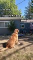 Adorable dog attempts flip off of trampoline #dogsofyoutube #goldenretriever #funnyanimals