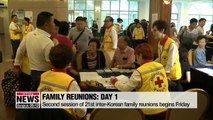 Their final hour for those families at Mount Kumgang was spent having lunch together.<br />Now it's back to reality.<br />Our Cha Sang-mi has some of the touching and tearful scenes from those last moments. <br /> “I cried every time I thought of saying goodbye to you.”<br /><br /> “If we live long and stay healthy, the time will come for us to meet again.”<br /> <br /><br /> “I wish. I wish we could see each other everyday.”<br /> . <br /><br /> Scenes of long-separated families finally reunited... but having to part ways again.<br />The older sister promises they'll meet again in the future, knowing they probably won't.<br />Another older sister comforts a younger one.<br /><br /> “We need to live long so we can see reunification.”<br /> <br /> “We've already lived too long.”<br /><br /> “These days they say you're young when you're 60. Ninety is the new 60."<br /><br /> The participants from South Korea arrived half an hour earlier at the meeting hall to wait for their relatives.<br />They say the three days they spent together -- despite being under strict control -- were amazing.<br /> The families also had a session for exchanging letters, where some grandchildren, nephews and nieces, wrote heartfelt letters for their grandparents, aunts and uncles, and vice versa.<br />The grandchildren had never seen their North Korean grandparents before, but they invited them to their homes in Seoul.<br /><br /> The venue for Sunday's farewell became a sea of tears, but it seemed they were happy deep down.<br /><br /> "Don't cry. Do you remember my face?<br /><br /> "Yes, not the upper part, but down here you look exactly the same."<br /><br /> Shim said the time had flown and she wanted to stop the clocks so they wouldn't have to say goodbye.<br /> Just after lunch, though, the 81 South Korean families, totaling 324 people, left Mt. Kumgang to go home.<br />Cha Sang-mi, Arirang News. <br />