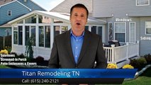 https://titanremodelingtn.com 6152402121 Titan Remodeling TN Franklin reviews<br />Excellent Rating<br /><br />Titan Remodeling did a Fantastic job on our new sun room. Its more quality than we ever could have expected. Thanks for your professionalism and great customer service. 5 stars in my opinion....<br /><br />Titan Remodeling TN<br />246 Polk Place<br />Franklin TN<br />37064