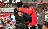 <p>Momen mengharukan terjadi di final pencak silat ajang Asian Games 2018. Dua tokoh yang akan berlaga di Pilpres tahun depan Joko Widodo dan Prabowo Subianto berpelukan dengan peraih medali emas Hanifan Yudani Kusumah.</p> <br /> <br /><p>Hanifan mengaku momen ini diharapkan bisa membuat Indonesia rukun dan damai jelang Pilpres tahun depan. Apakah momen pelukan Joko Widodo dan Prabowo Subianto di final pencak silat Asian Games 2018 mampu mendinginkan suasana jelang Pilpres 2019? Dan bagaimana kita semua ikut menjaga momen menyejukkan ini hingga pilpres usai.</p> <br /> <br /><p>Untuk membahasnya sudah hadir di studio sekretaris Kementerian Pemuda dan Olahraga Gatot Dewa Broto serta Direktur Presidential Studies Decode UGM Nyarwi Ahmad.</p> <br />