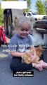 Cute Baby Girl Feed & Love The Chicken By Her Way