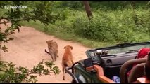 A stray dog-faces off against a young leopard in Jaipur, northwest India. The dog manages to stand its ground, barking incessantly at the big cat. The leopard stares at it in a tense stand-off, while the dog continues its tirade. It then leaves quietly, without attacking the dog. A forest official said the dog strayed into the forest accidentally leading to the meeting with the two-year-old female leopard named Juliet. “Juliet left quietly as there were visitors in jeeps behind the dog. If not it is unlikely that the dog would have survived the encounter,” he added.