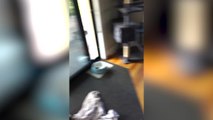 Tyson the dog chills with breakfast and TV