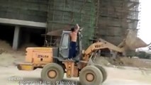 A fitness fanatic performed pull-ups on a moving digger while showing off his hula hoop prowess at the same time.<br /><br />In the funny video, the bare-chested worker, who is wearing a hard hat, lifts himself up and down on the moving digger while performing impressive tricks around his waist with five steel hoops.<br /><br />According to reports, the man is a fitness enthusiast and has been working out for the last five years.<br /><br />The video was filmed in Shanwei City in southern Guangdong Province in 2017.