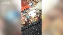 Madrid residents were left baffled after a hyper-realistic whale was found beached in a pond in the city centre.<br /><br />Footage captured today (September 14) shows the realistic whale lying on its side near the Segovia Bridge as people in white overalls examine the animal.<br /><br />The 15-meter-long behemoth is actually an art installation by a Belgian collective intended to start a conversation about the environment. <br /><br />"It’s meant to get people thinking, through art, about the kind of city they want to live in and what sort of part they can play in looking after the environment,” said Madrid's city council.
