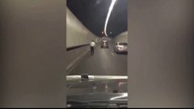 This is the bizarre moment a pensioner was caught on CCTV cameras riding a mobility scooter through a road tunnel in a seaside town. <br /><br />The 65-year-old man’s stunt landed him in trouble with the police in the town of Izola on south-western Slovenia’s Adriatic coast.<br /><br />His journey triggered alarms in the Markovec tunnel as sensors mistook the scooter for a pedestrian illegally using the road tunnel.<br /><br />And he was met by police officers as he emerged from the end of the two kilometre (1.2 mile) tunnel in the early hours of the morning.<br /><br />The man, whose name has not been released, was issued with an on-the-spot fine for an undisclosed amount for his journey.<br /><br />Police told local media the man had been unable to give them an explanation for the stunt and they assumed it was a prank or a forfeit for a lost bet.<br /><br />The video is proving popular with viewers after it was posted online by road safety officials as a warning to others.
