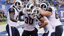 Los Angeles Rams quarterback Jared Goff zips a 6-yard touchdown pass to wide receiver Robert Woods for the second time in the game.