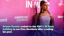 Pete Davidson Receives Death Threats Over Ariana Grande Ever since Pete Davidson and <br />Ariana Grande announced their <br />engagement, Davidson has been <br />met with a slew of insults. But apparently, haters have taken their disapproval of the engagement one step further. Pete Davidson, on 'The Howard Stern Show' When Davidson is out with Grande, <br />he uses a security detail because "it's like 'The Walking Dead' out there." Though Davidson doesn't think he deserves death threats, he did express to 'Variety' in August how he can't even believe that Grande is <br />with him. Pete Davidson, to 'Variety'
