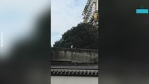 This is the heart-warming moment a good Samaritan braves a filthy canal to rescue a stranded kitten.<br /><br />The hapless moggy fell into the dirty water before scrambling to the side of the waterway yesterday (Thu) afternoon in Bangkok, Thailand.<br /><br />Its faint cries of meow from the female cat were heard by passers-by who were too afraid to wade through the notoriously polluted canals. <br /><br />But one man bravely removed his top - and despite not being a strong swimmer - used a polystyrene box as a float to negotiate the deepest part of the water. <br /><br />He was even carrying a large net in his free hand, which he then used to scoop up the kitten and pass it to a neighbour whose house backs onto the canal.<br /><br />The endearing scene was filmed by onlooker Rimklong Sammakkhi, 37, who said the man was a ''hero''.<br /><br />She added: ''The car was stuck and couldn't get out. I think everybody has to say thank you to this man who rescued the cat. The water is not clean and he was very brave to go inside.''<br /><br />Rim said the cat has now been 'adopted' by one of the residents. She added: ''The kitten was only small, and still young. I think it could have lost its mother and then fallen into the canal. It will be taken care of now by people who live there.''