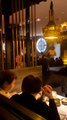 Violinist plays Marching on Together for diners at a Leeds curry house