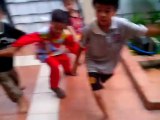 Boy in the way of Another Boy s Soccer Trick