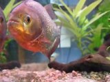 Piranha agé de 5ans faisant 15cm de long, dans un aquarium de 60 Litres. C'est un poisson avec beaucoup de personnalité, puissant et nerveux.