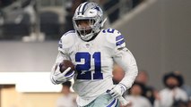 Dallas Cowboys running back Ezekiel Elliott dashes down the field for a 20-yard gain against the Jacksonville Jaguars.