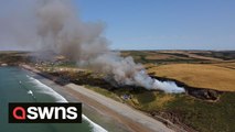 This video shows the moment a car was hit by an unsuspecting boulder that had rolled down the mountain in southeast Tibet.<br /><br />In the October 3 clip, a large rock can be seen tumbling down and hitting the front of the car, causing part of its body to come off as the vehicle did a 360 turn and began smoking. More rocks can be seen falling after that.<br /><br />According to local police, the incident was not human-caused and there were no major injuries.