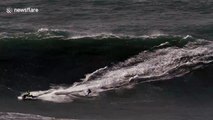 This is the terrifying moment British surfer Tom Lowe is battered by a giant wave off the coast of Portugal.<br /><br />Footage captured in Praia do Norte on October 16 shows Lowe riding on a wave and falling off his surfboard before being engulfed by the wave.<br /><br />After the wipeout Lowe was also hit by the next wave, the biggest on the set according to the filmer.<br /><br />Tom Lowe, 34, is one of the most experienced Big Wave surfers in Europe with vast experience chasing big waves around the world.<br /><br />Praia do Norte beach has become famous for huge waves since Hawaiian surfer Garrett McNamara set a then-record in 2011 for the largest wave ever surfed, when he rode a 78-foot wave.