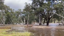 Billabong Creek in flood across Massurit Lane.