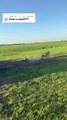 This biker was lucky when he fell off his dirt bike while trying to drive it onto a very steep ramp wall. When he lost his grip and fell, he landed right on his feet.