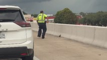 Occurred on July 21, 2018 / Saint Petersburg, Russia<br /><br />Info from Licensor: "I was driving along the highway when I saw a flock of ducks waddling up the road. We protected them from the traffic and some good Samaritans helped round them all up off the road."