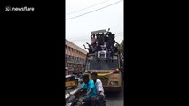 This is the terrifying moment a train moved off while an Indian railway worker was still beneath it repairing a fault.<br /><br />The incident occurred near Howrah Station in Kolkata last Friday (November 9).<br /><br />A video filmed by another railway worker shows a guard crouched beneath the train between the tracks fixing the brake system when suddenly the train starts to move.<br /><br />The filmer runs next to the track shouting for passengers to halt the train by pulling the emergency alarm.<br /><br />When they don't appear to hear him, he starts to scream in desperation.<br /><br />Eventually - after an agonisingly long time - the train does come to a halt and the guard emerges unharmed.<br /><br />He immediately gets on the radio, presumably to give the driver a piece of his mind.