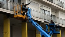 Des filets aux fenêtres de l’immeuble Concorde