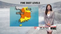 Good morning, it's forecast to be a dusty start to the week. Stagnant air flow and toxic smog from China will affect fine dust levels. A face mask is a must if you plan to be outdoors for a prolonged period of time. <br /><br /> Chinese cities continue to draw attention for their smog-filled skies, but Japan will have decent air quality. <br /><br /> Temperature-wise, we'll notice readings going up a couple notches higher than Sunday... but as the week goes on.. the mercury will gradually go down and tomorrow we'll see lows at the freezing mark. Have your winter jackets ready. <br /><br /> Taking a closer look at today's temperatures, morning lows in most parts are kicking off in the single digits except Jeju under mostly sunny skies. <br /><br /> Daily highs will range between 12 and 17 degrees. Busan will be the mildest at 17 degrees, Seoul and Chuncheon will get up to 15 degrees. Have your face mask ready and again, check the dust levels before heading out. <br /><br />That's Korea for you and here's the international weather for viewers around the world.<br />