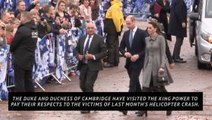 The Duke and Duchess of Cambridge have visited Leicester City Football Club to pay tribute to the victims of the helicopter crash which killed five people including Leicester City's chairman Vichai Srivaddhanaprabha. Report by Thomasl. Like us on Facebook at http://www.facebook.com/itn and follow us on Twitter at http://twitter.com/itn