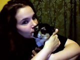 Chihuahua not at all happy to be getting kisses from his daddy
