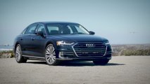 The Audi A8 is stylistically defining – it signals the dawning of a new design era for the entire brand. The front end with the wide, upright Singleframe grille and the fluid, muscular body symbolize sporty elegance, sophistication and progressive status. The new A8 delivers on the promise made by the Audi prologue design study. The luxury sedan possesses a powerful presence – whether in the 5.17 meter (17.0 ft) standard version or the A8 L, which has a 13 centimeter (5.1 in) longer wheelbase.<br /><br />The Audi brand is renowned worldwide for sports appeal, lightweight construction and quattro permanent all-wheel drive – and the design of the new A8 conveys these values. The balanced proportions emphasize all four wheels in equal measure. Muscular shapes above the wheel arches give visual expression to the quattro drive. Viewed side-on, the upright front end combined with the gently inclined rear create visual tension. The flagship model proclaims its identity both day and night, drawing on both the striking HD Matrix LED headlights with Audi laser lighting, and the LED light strip combined with OLED technology rear lights. These produce unique light animations as the driver approaches and leaves the car.