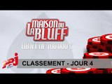 Classement au matin du Jour 14.<br />La tension est grande ce matin, celui qui sera dernier du classement devra jouer sa survie dans l'aventure durant un Heads Up de la Mort...<br /><br />La Maison du Bluff revient sur NRJ12 pour sa 6ème saison avec une seul objectif pour les candidats : la victoire et les 100.000 € qui vont avec.<br /><br />Pour cette édition, place à la compétition intense et quotidienne.<br />Pour autant la LMDDB reste la seule émission de télé-réalité que les télépectateurs peuvent rejoindre à tout moment en se qualifiant sur le site du partenaire, toutes les infos sur http://www.lamaisondubluff.fr<br /><br />Amaury Leveaux, Champion Olympique de natation et Hassan N'Dam, Double Champion du Monde de boxe ne s'y sont pas trompés et sont des redoutables candidats !<br /><br />Les liens utiles :<br />Site officiel : http://www.lamaisondubluff.fr<br />Facebook de l'émission : http://www.lamaisondubluff.fr<br /><br />Plus de vidéos poker en Français : http://www.youtube.com/pokerstarsfrance<br />Apprenez le poker en vidéos : http://www.pokerstaslive.fr/pokerschool<br /><br />Profitez d'un bonus cash de dépôt sur PokerStars : https://www.pokerstars.fr/poker/promo...<br /><br />Pour profitez des retransmissions de tournoi de poker en direct et en Français :<br />http://www.pokerstarslive.fr/calendrier<br /><br /><br />Premier sponsor d'émissions de poker au monde, PokerStars est partenaire de plusieurs émissions en France dont La Maison du <br /><br />Bluff et l'EPT sur NRJ12. PokerStars a pour ambassadeurs Cristiano Ronaldo, Neymar Jr. et Ronaldo.