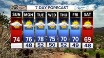 Cloudy start to the morning with temps reaching 74 by the afternoon