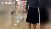 Floodwater pours into luxury department store Harvey Nichols in Manchester
