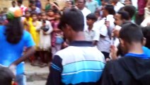Snake climbing a tree in a village