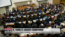 The United Nations General Assembly has adopted a resolution... condemning North Korea's human rights violations. <br />It calls for further sanctions on those who are most responsible for human rights abuses,... likely referring to North Korean leader Kim Jong-un.<br />Kan Hyeong-woo reports.<br /> <br />For the 14th consecutive year, the United Nations General Assembly passed a resolution on Monday local time in New York,... criticizing the "systematic, widespread and gross" human rights violations in North Korea.<br /><br />The non-binding resolution emphasizes that member states are deeply concerned at the grave human rights situation and the lack of accountability for human rights violations under the regime.<br /><br />Condemning the use of torture in the North, the resolution also criticizes the inhumane conditions of detention, public executions and the existing system of political prison camps. <br /><br />The assembly's adoption of such a resolution comes at a time where the denuclearization talks between Pyeongyang and Washington appear to have stalled,... pointing out the lack of progress in addressing the human rights issues in the North. <br /><br />The resolution urges the UN Security Council to consider further sanctions on the regime to aim at those most responsible for human rights violations,... seen as a clear reference to North Korean leader Kim Jong-un. <br /><br />But North Korea's ambassador to the UN rebuked the allegations,... calling them the most despicable false allegations made up by a number of defectors who escaped the regime after committing crimes. <br /><br />"Draft resolution has nothing to do with genuine human rights,... as it is a product of political plot of hostile forces that try to disgrace image of DPRK." <br /><br />But the resolution, unlike previous versions, added a part that says it welcomes the ongoing diplomatic efforts with the regime and notes the importance of dialogue and engagements for the improvement of the human rights and humanitarian situation in North Korea. <br /><br />The text of the resolution was jointly penned by Japan and the European Union with contributions from other member states,... including South Korea. <br />Kan Hyeong-woo, Arirang News <br />